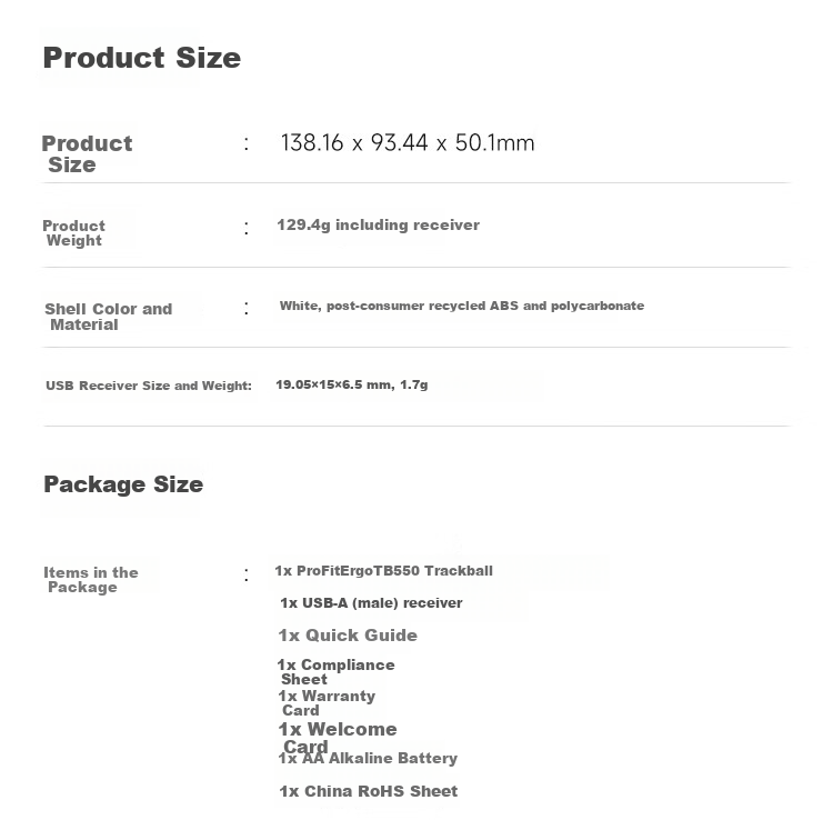 **Product Name:** ProFitErgoTB550/TB450 Wireless Trackball