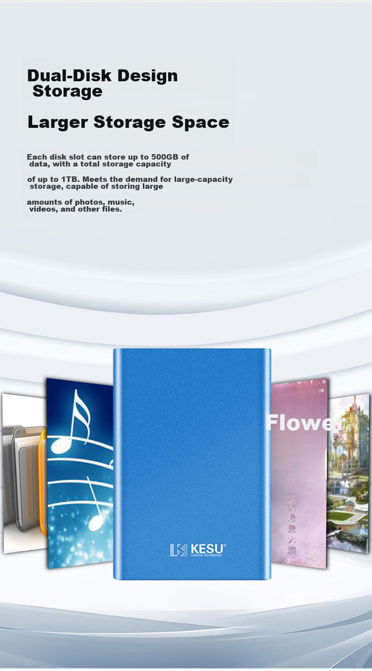 **Storage:** Dual-disk design, each disk slot can store up to 500GB of data, total storage capacity up to 1TB