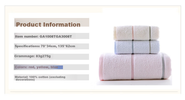 **Description:** Modern and stylish towel set for a colorful and vibrant life. Includes one red bath towel and one each of yellow and blue towels. Soft to the touch with a simple and elegant design, adding a touch of color to your mood. OEKO-TEX100 EU certification. A 50-year professional towel brand, made with eco-friendly textiles in China.