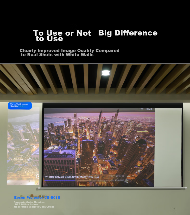 **Screen Material:** 4K high-definition screen material that is wrinkle-resistant and anti-curl. Ordinary electric screens may use low-quality materials resulting in unclear projections. KUAIDUOXIAOWU screens utilize a new generation PET high-definition screen material that automatically repairs and resists curling, providing excellent picture quality and enhancing color depth for projections.