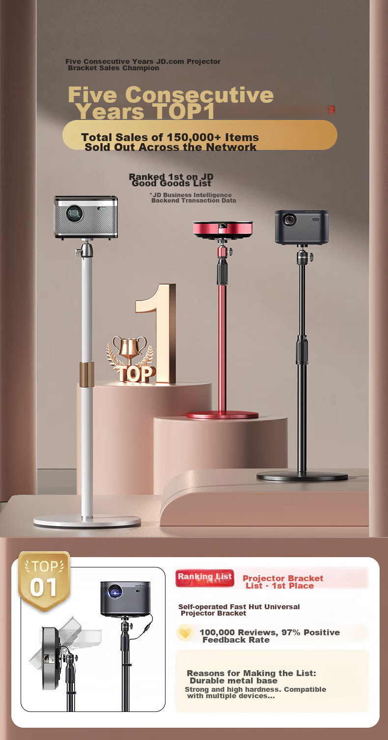 - Ranked No.1 in projector stand sales on JD.com for 5 consecutive years