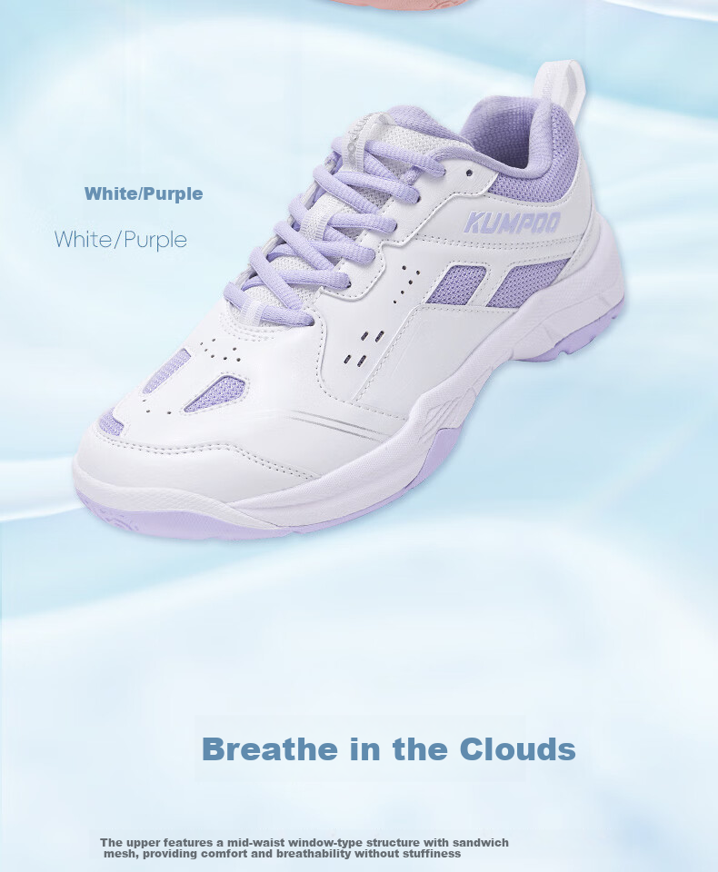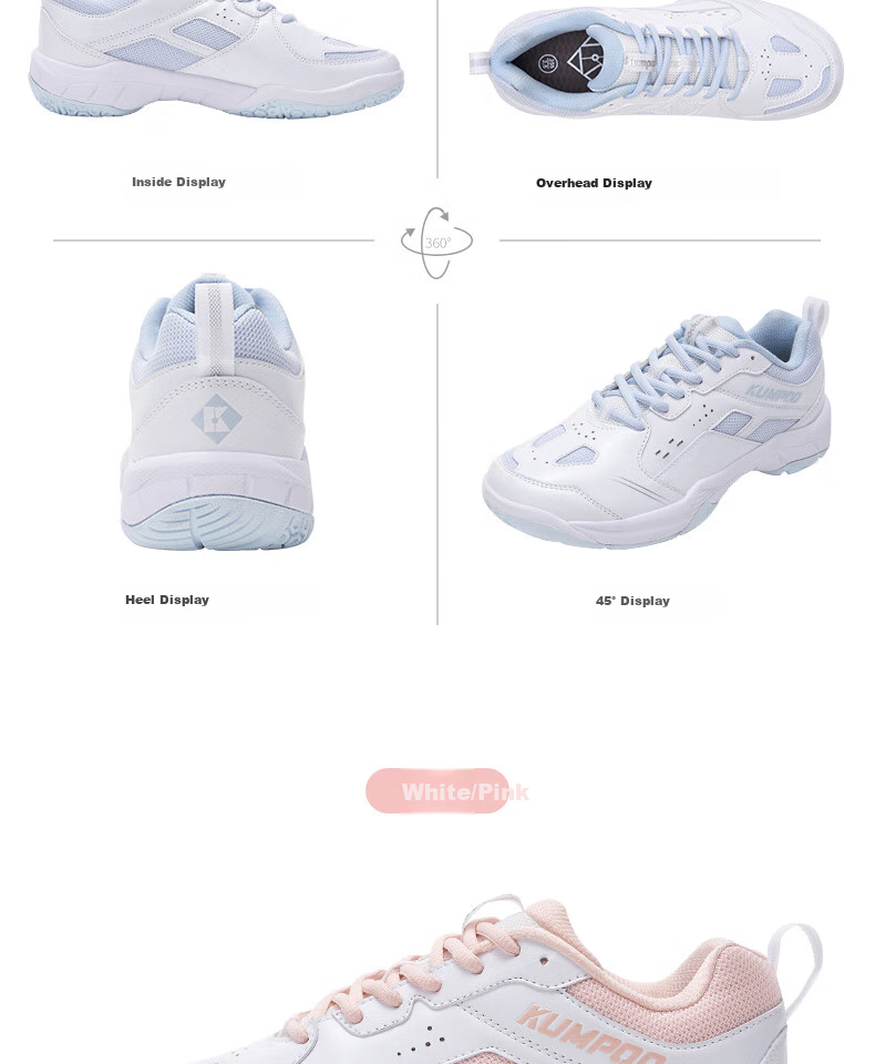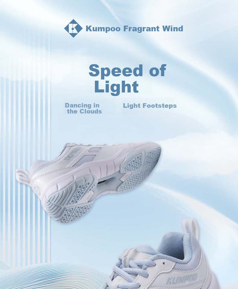 KUMPOO (KUMPOO) Badminton Shoes, Light-Speed Non-Slip Breathable Competition Training Shoes for Men And Women, Sports Shoes KHR-D20 White/light Blue 36