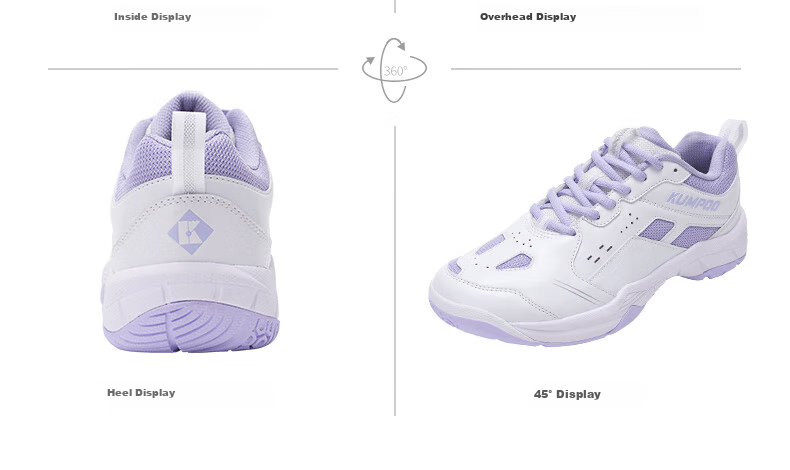- White/Purple: Outside, Inside, Overlooking, Heels, 45°
