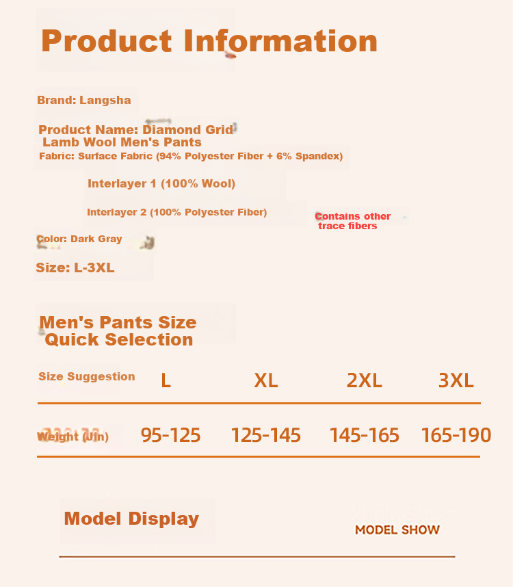 **Product Name:** Diamond Grid Wool Filling Men's Pants