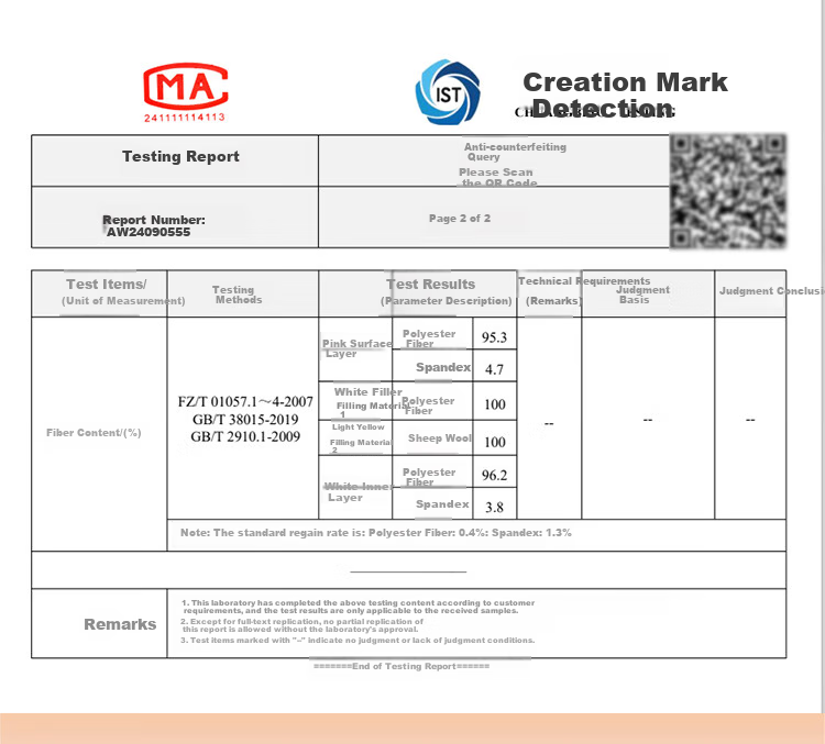Testing conducted according to FZ/T01057.1~4-2007 and GB/T38015-2019 standards