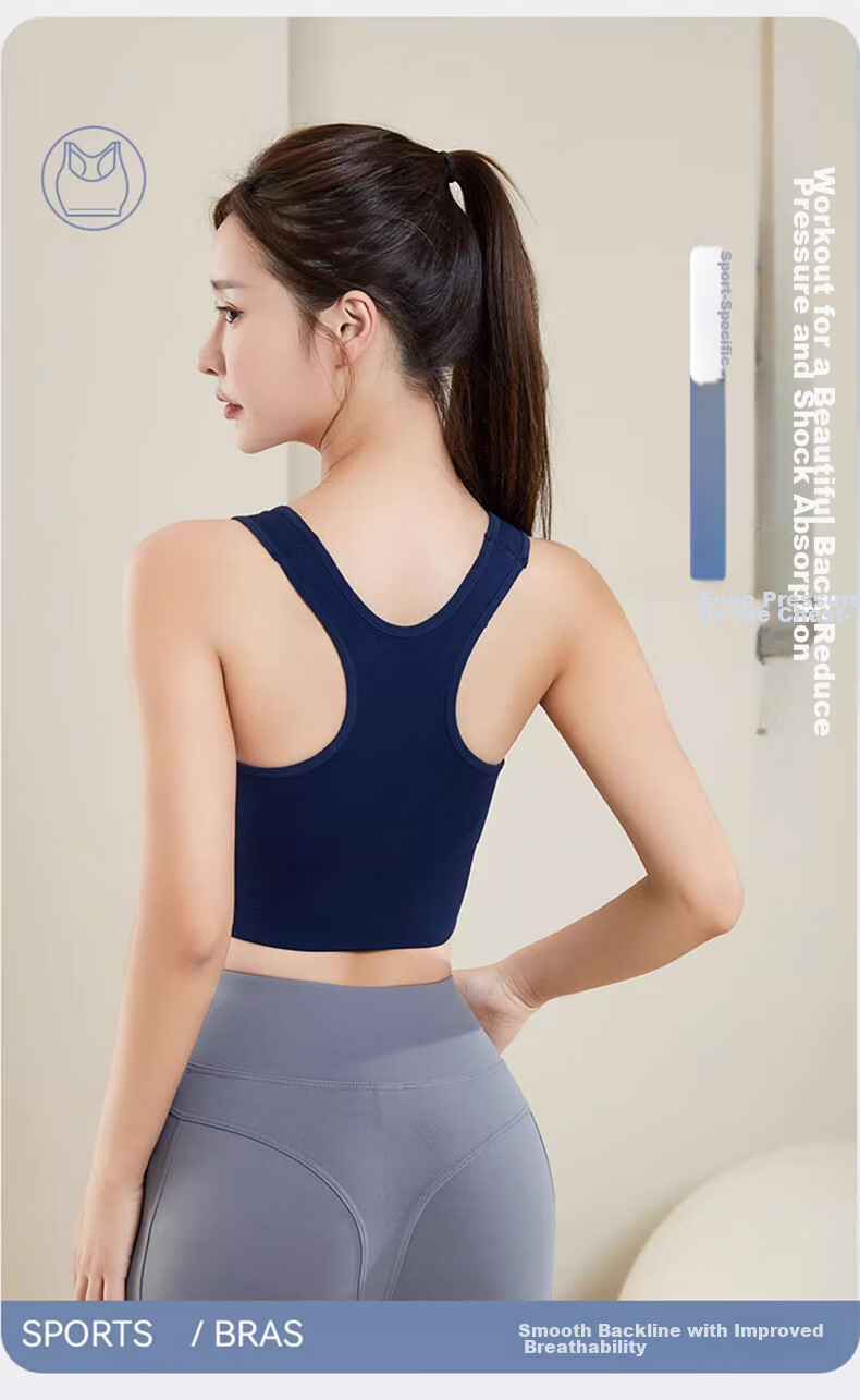 Technology: Effectively reduces chest pain during exercise, self-developed soft shockproof support, anti-shock side breast control, before wearing - slightly sagging, after wearing - comfortable and shockproof.