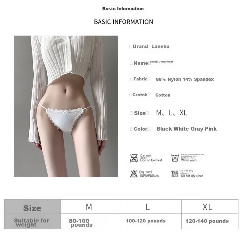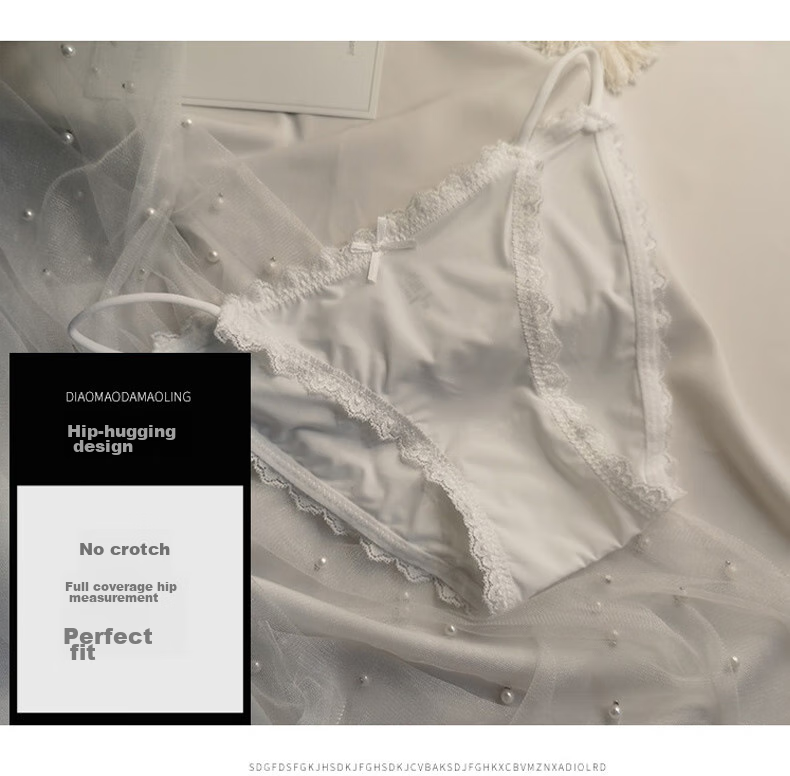 **Design:** Ice silk thin strap design, sexy thin strap lace bow, showcasing slender and seductive beautiful legs, sexy lace panties.