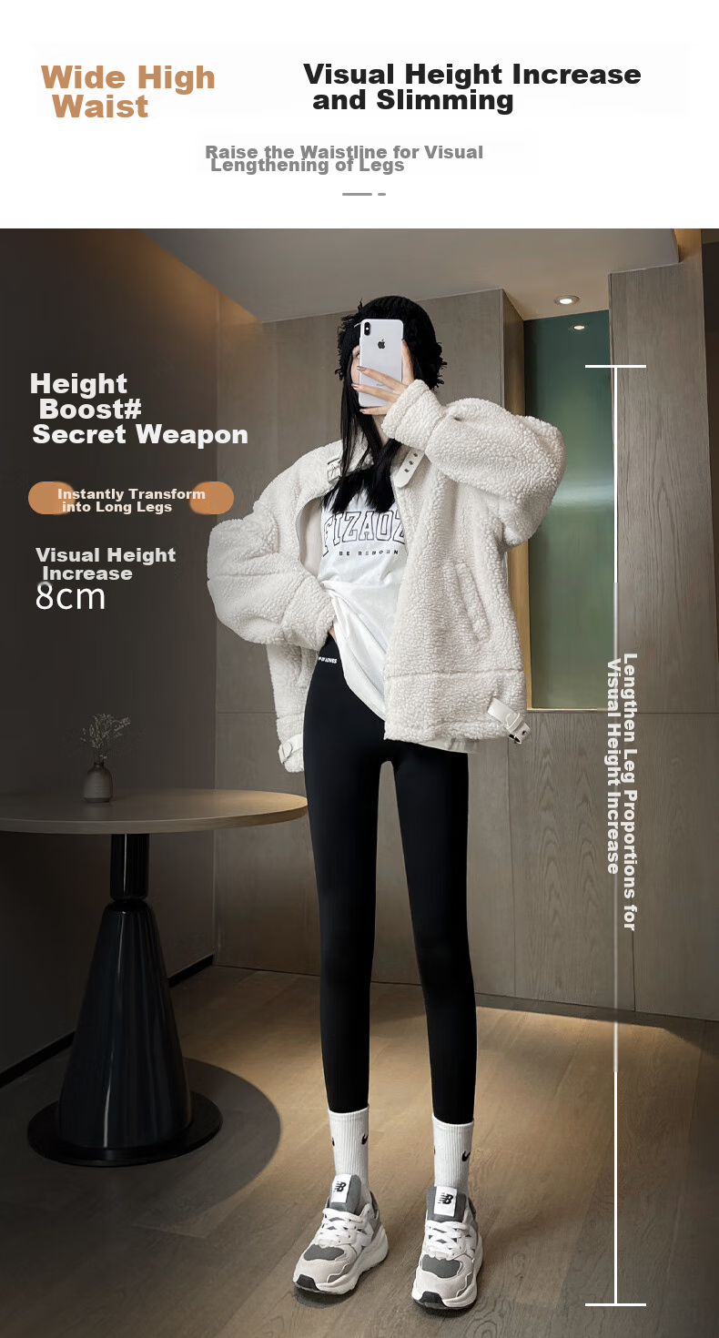 - Wide high waist for visual height increase and slimming effect