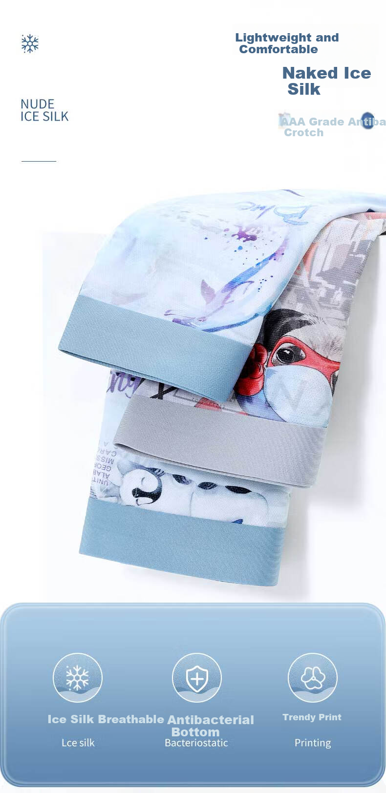 Technology: Ice silk, bacteriostatic, high elastic stretch