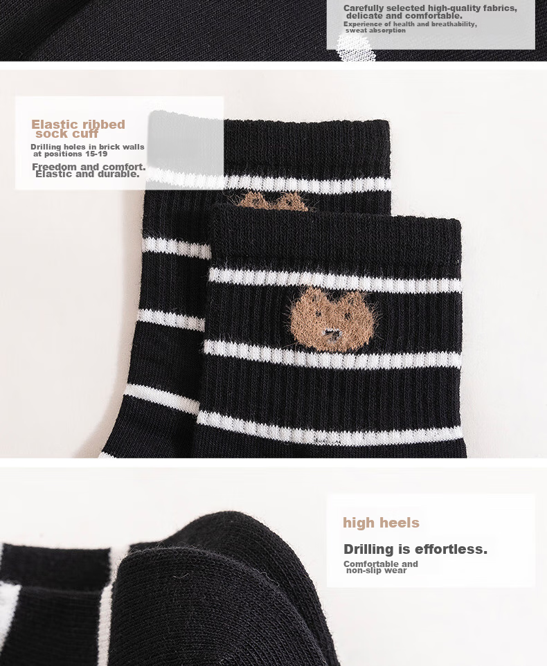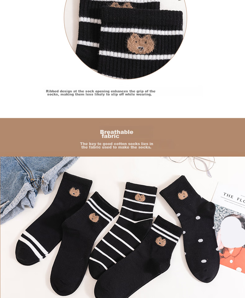 Features: Soft and comfortable, breathable, skin-friendly, elastic cuff design, comfortable rubber band at the sock opening, seamless stitching, ribbed design for enhanced grip, durable and breathable fabric