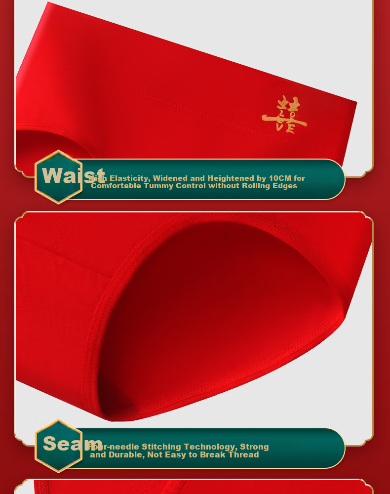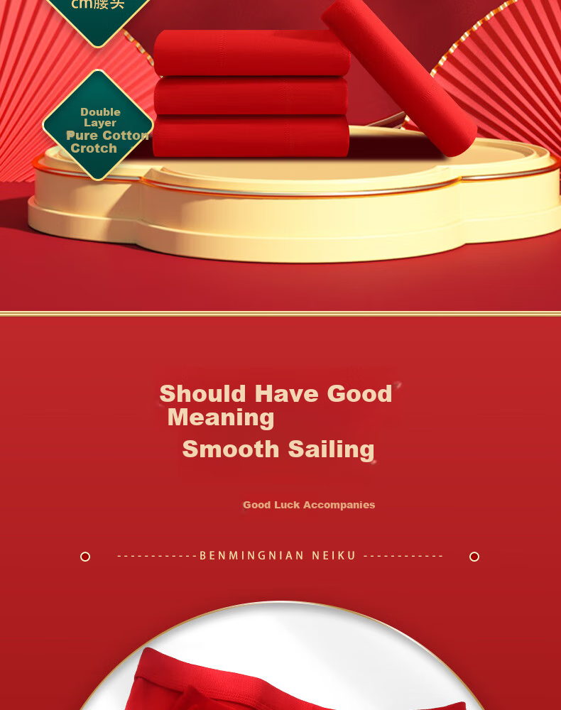 Features: Double-layer design, pure cotton crotch, auspicious motifs for good luck