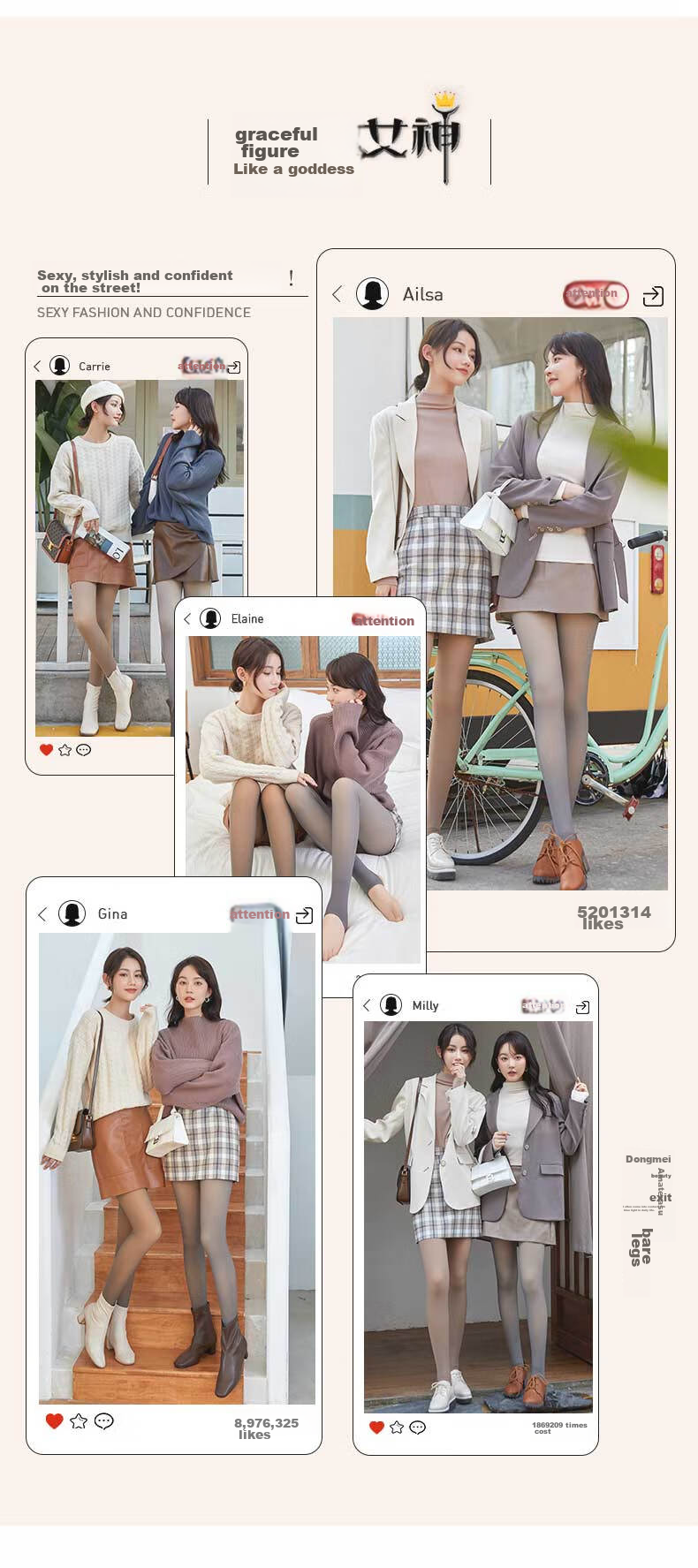 Description: High-value gray sense plain skin, 16, to meet your spring, autumn, and winter needs, slightly sexy, three thickness options: 75g/200g/300g. As winter approaches, will spring be far behind? High-value appearance, still warm, gray, 1, truly transparent skin, natural skin-like feeling, high elasticity without tightness. Micro-pressure for slimming effect, shaping without bulkiness, unique dual-color collision for a fashionable look, Realistic, Salt and sweet, not bulky, New two-color collision, be fashionable, nude feeling, beautiful skin, realistic and transparent. Three thickness options to meet autumn and winter needs, suitable for deep autumn: 15-28°C, suitable for early winter: 6-15°C, suitable for cold winter: -10-8°C. Unique transparent gray coffee skin series, two fabric options, three colors to choose from, unique transparent gray, black transparent skin, coffee transparent skin, B, gray transparent skin, initial posture, with a graceful figure, like a GODDESS, sexy and stylish, exuding confidence when going out! Ailsa, focus on SEXY FASHION AND CONFIDENCE, Carrie, focus on Elaine, focus on Gina, focus on 5201314 likes, focus on winter beauty, Tianzhao, beauty, out, street style, bare legs, ★, 8976325 likes, ★, 1869209 fees. Types: Slimming and shaping, essential for going out, slimming and showing the door artifact, ankle-length, pantyhose style. Thin, transparent, mid-waist, abdomen control, plus size, back crotch. Layered design, seamless shaping, Integrated Plush for warmth and no bloating. Integrated evening, integrated plus velvet, warm without bulkiness, high-density double yarn technology, high-density knitting process, micro-pressure for slimming effect, model display, slimming and shaping, subtly sexy, slim and beautiful skin. Suitable for height 150-175cm, weight 90-160kg. Beautiful skin.