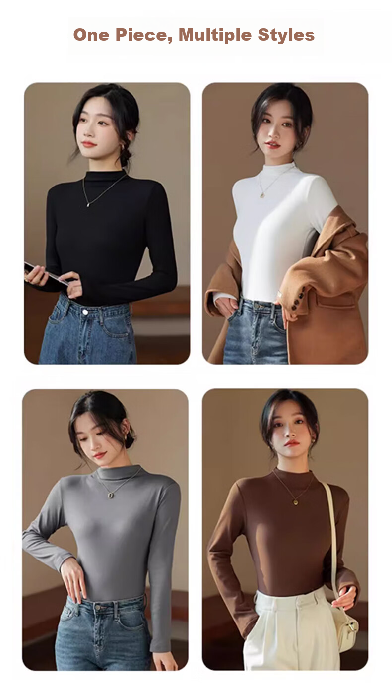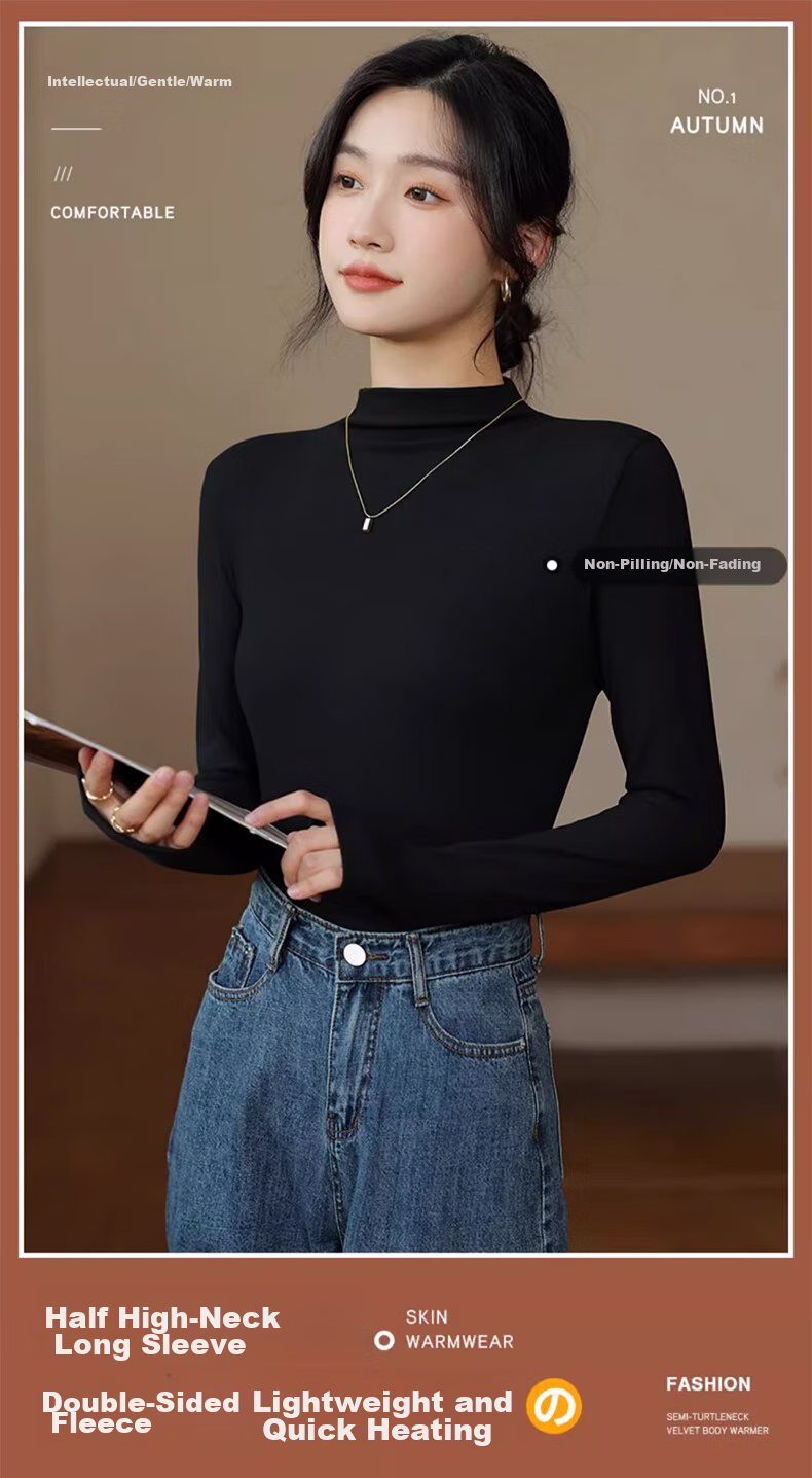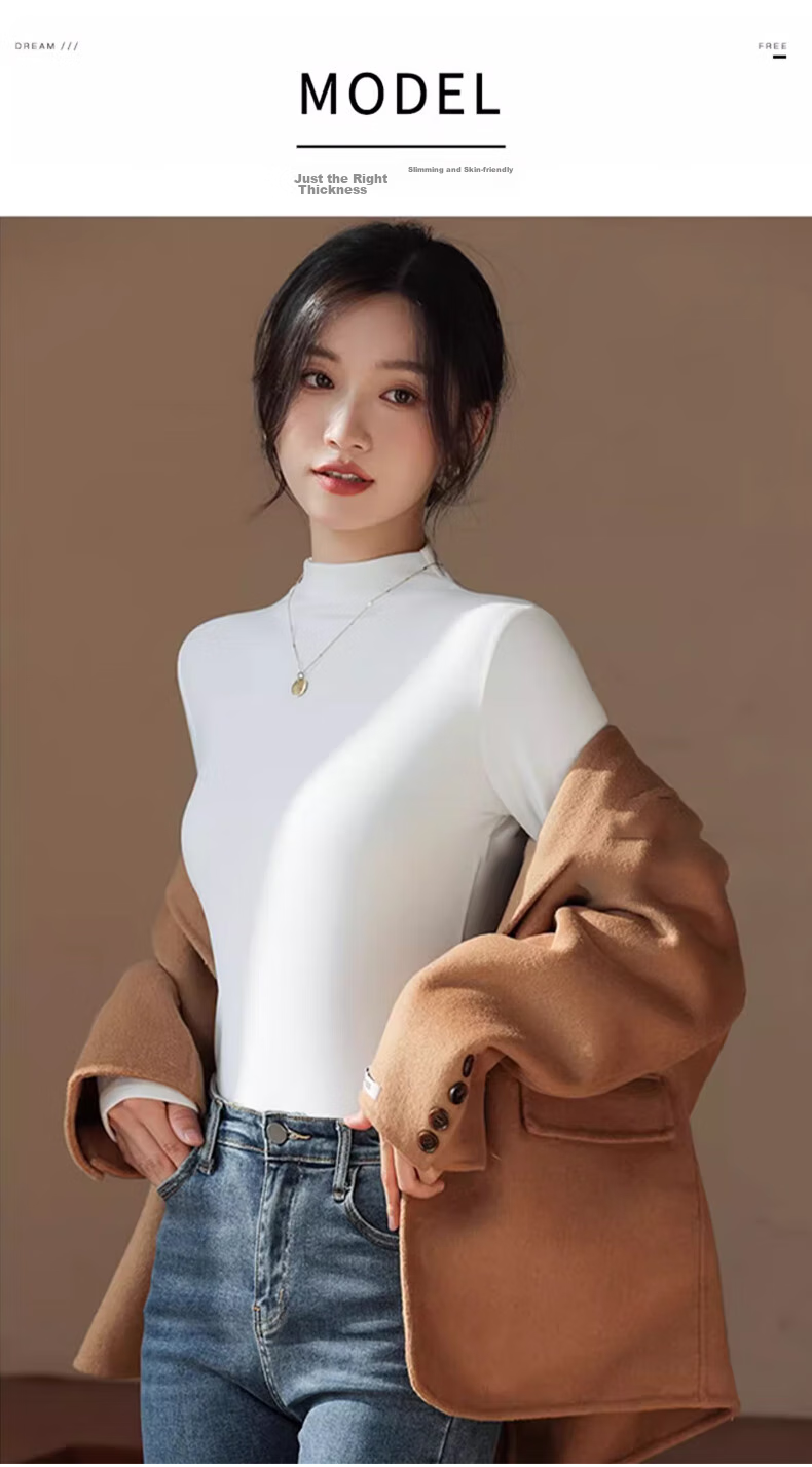 **Design Details:** Soft and skin-friendly fabric, Half turtleneck, Comfortable and slimming fit