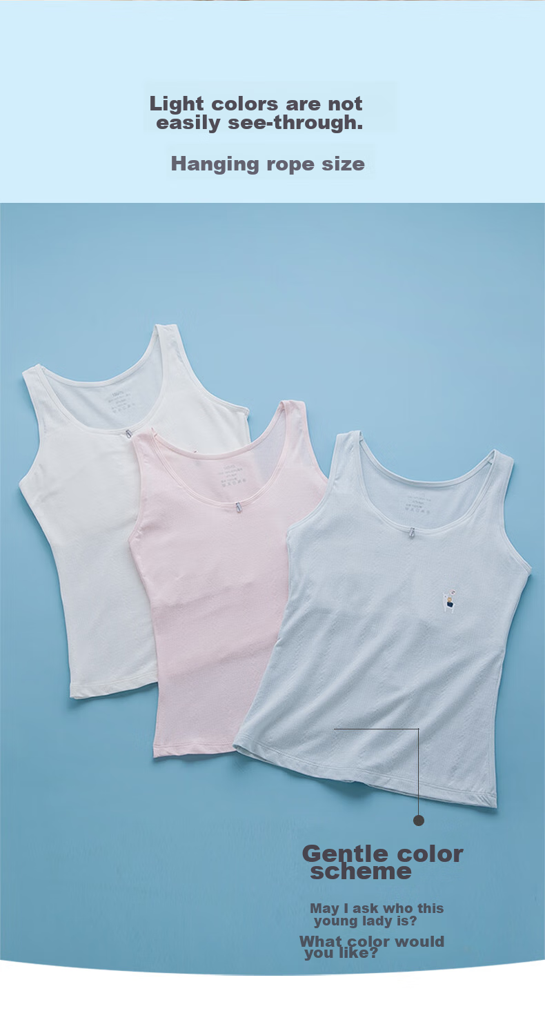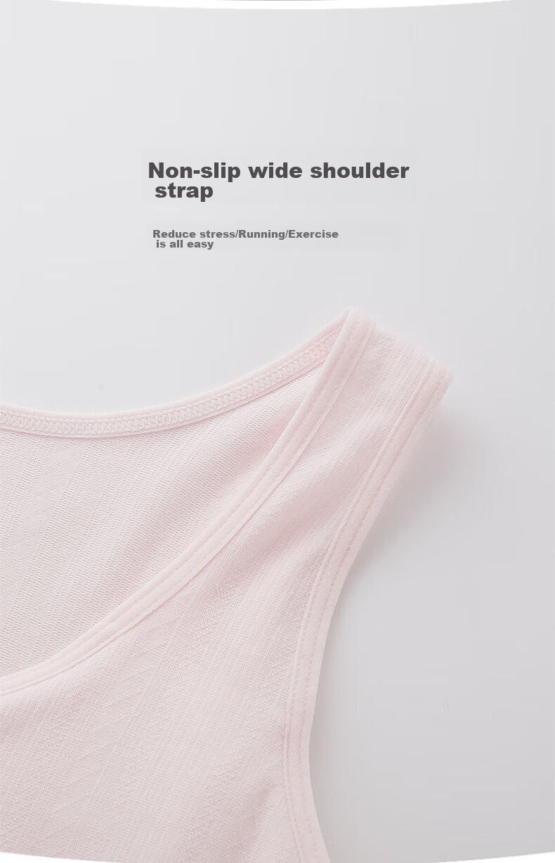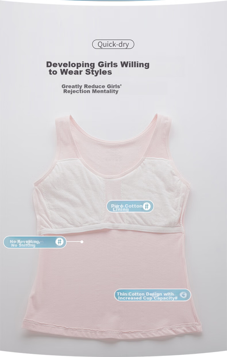 - Two-in-one design combining bra and vest for girls in mid to late development stage.