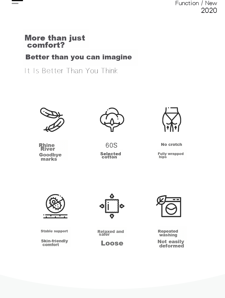 **Features:** Seamless fit, 60S combed cotton, no crotch binding, no marks, buttocks coverage, natural and healthy, elastic fit, skin-friendly, durable, no tightness, no deformation