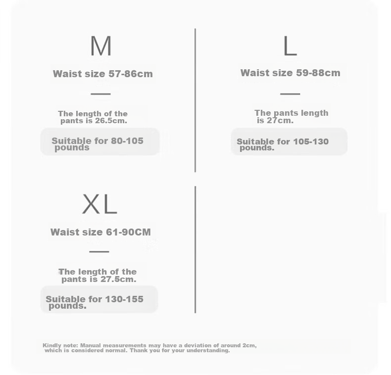 Size M: Waist 59-88CM, Length 27CM, Suitable for 105-130 pounds
