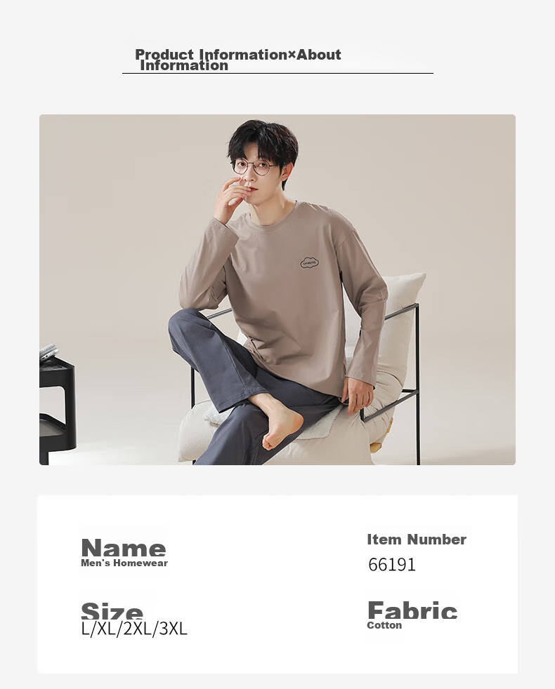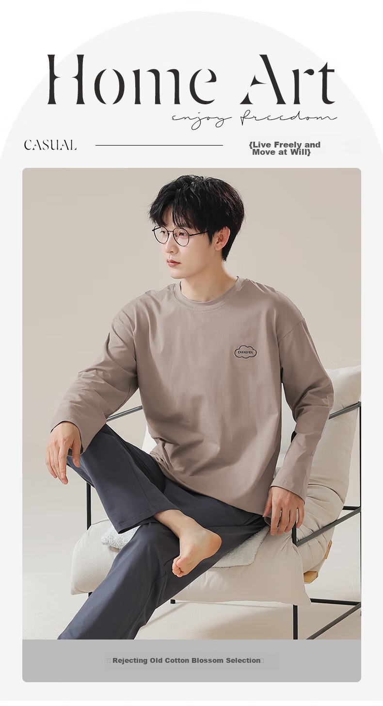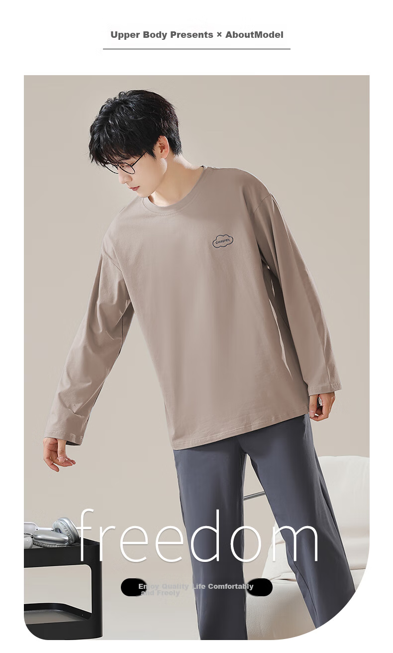 **Description:** A set of simple and casual pajamas that are not only comfortable but also reflect an attitude towards life. Suitable for daily wear without constraints.