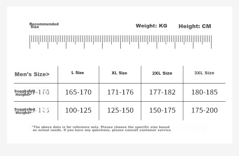 - **Recommended Sizes:** L (165-170cm, 100-125kg), XL (171-176cm, 125-150kg), 2XL (177-182cm, 150-175kg), 3XL (180-185cm, 175-200kg)