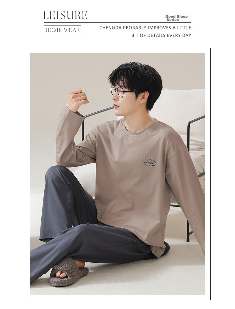 **Description:** A set of simple and casual pajamas that are not only comfortable but also reflect an attitude towards life. Suitable for daily wear without constraints.