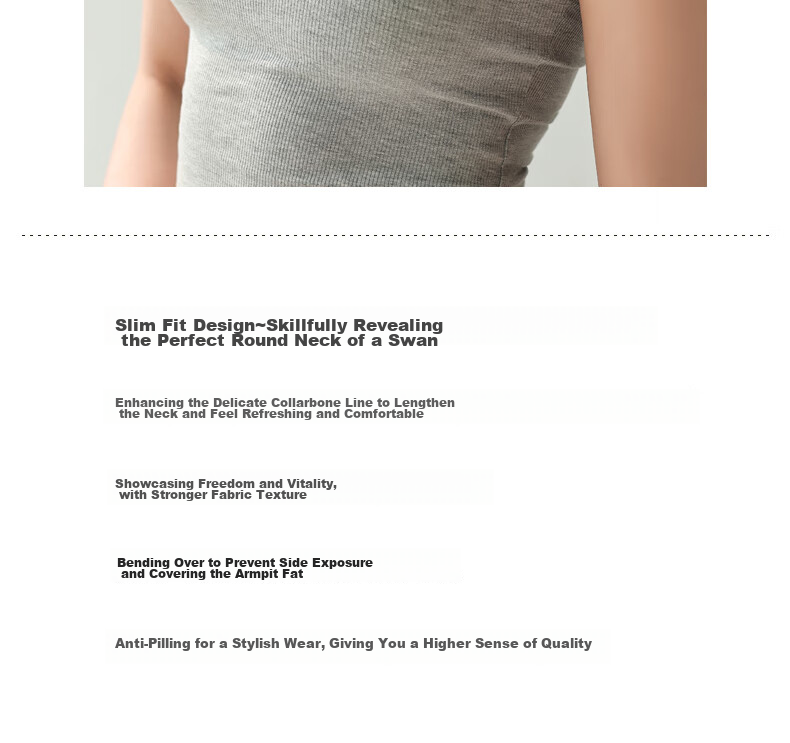 **Features:** Can be worn as an outerwear or inner layer, suitable for individuals weighing 70-150 pounds. The tailored design ensures both style and functionality for outerwear. Slim fit design with a round neckline that accentuates the elegant collarbone, elongating the neck for a refreshing and comfortable look. The fabric is of high quality, preventing transparency when bending over and providing a more stylish fit. The high elasticity fabric offers freedom of movement without constraints.
