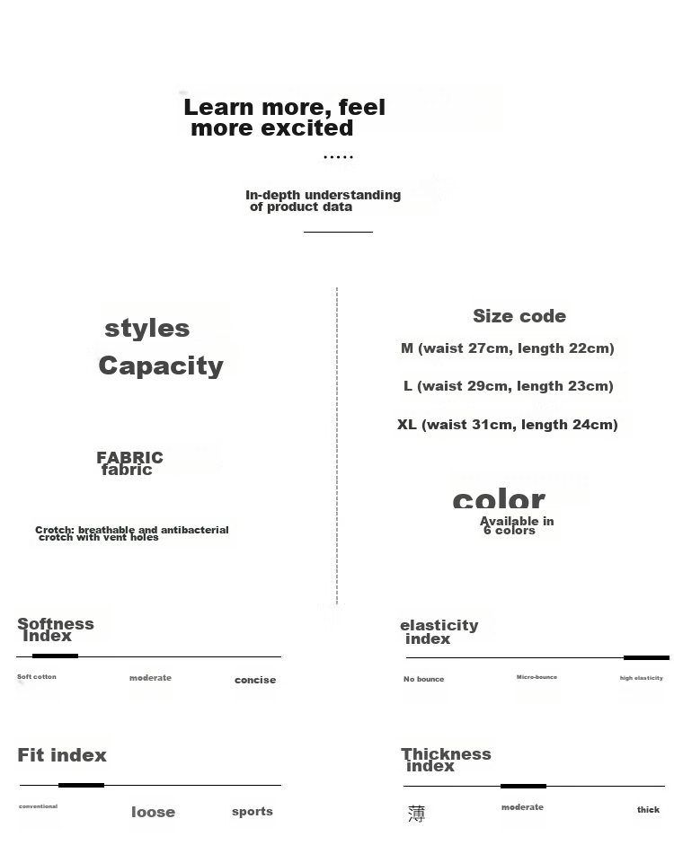 **Product Details:** Elastic waistband, hip-lifting design, breathable and antibacterial crotch, high-quality fabric