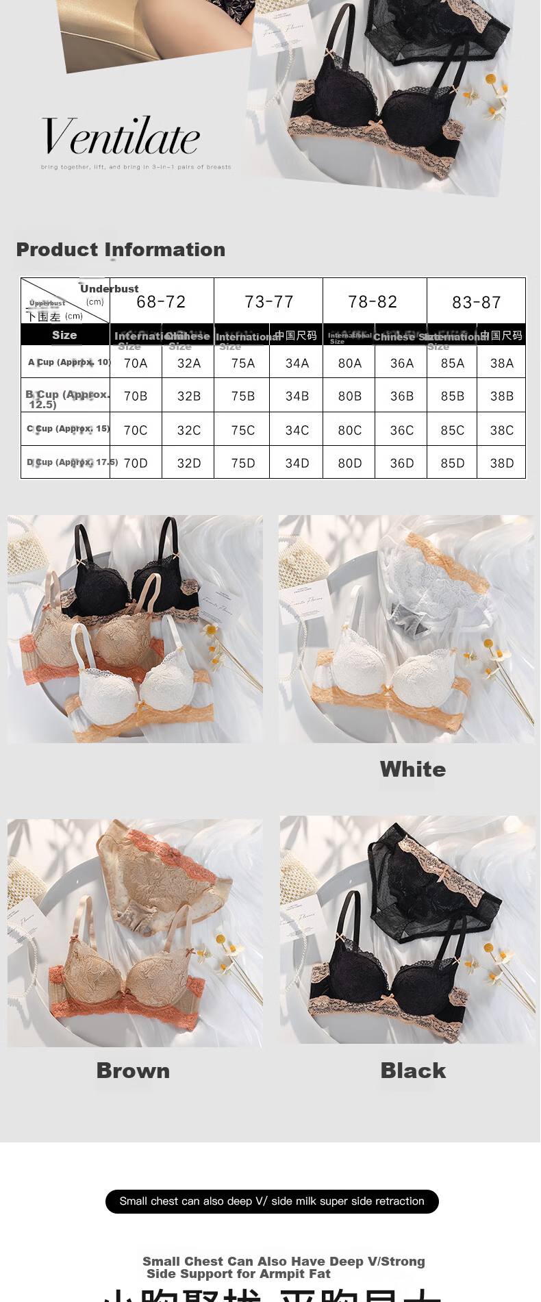 - Deep V design suitable for small chests and strong side support for armpit fat
