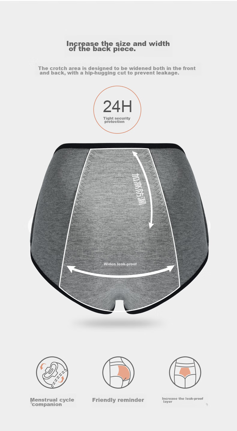 - Wide and enlarged back panel with widened crotch area for leak-proof protection