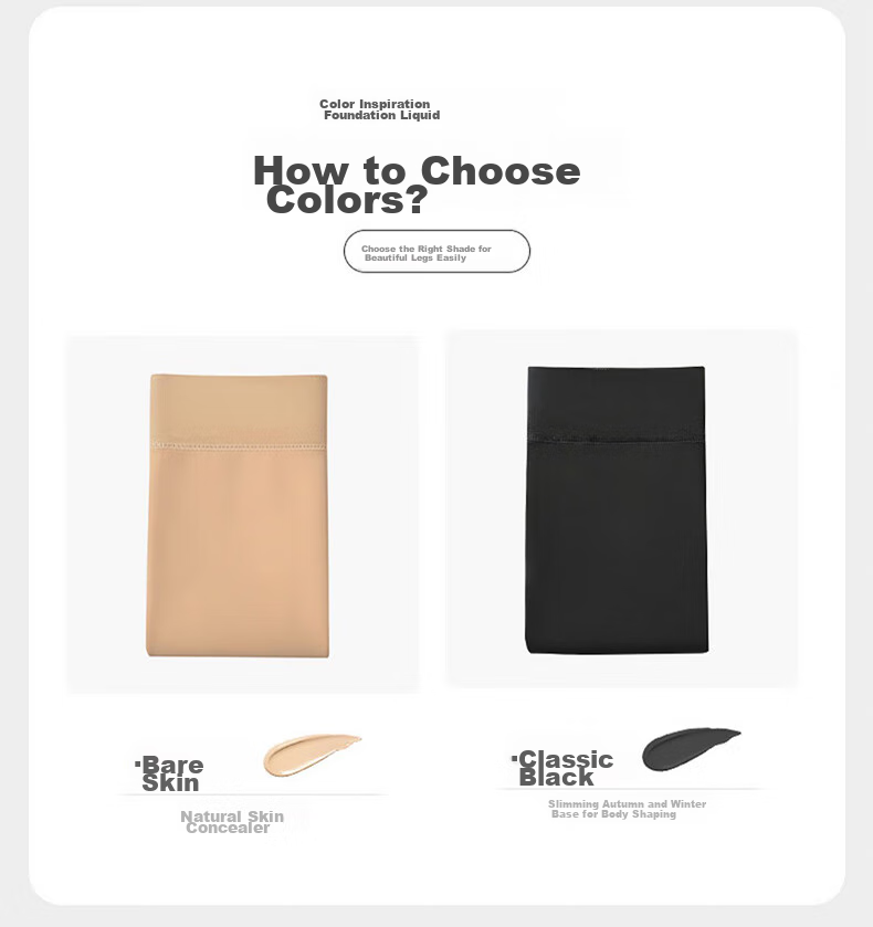 **Color Options:** Inspired by foundation shades, offers a range of colors for a flawless leg appearance