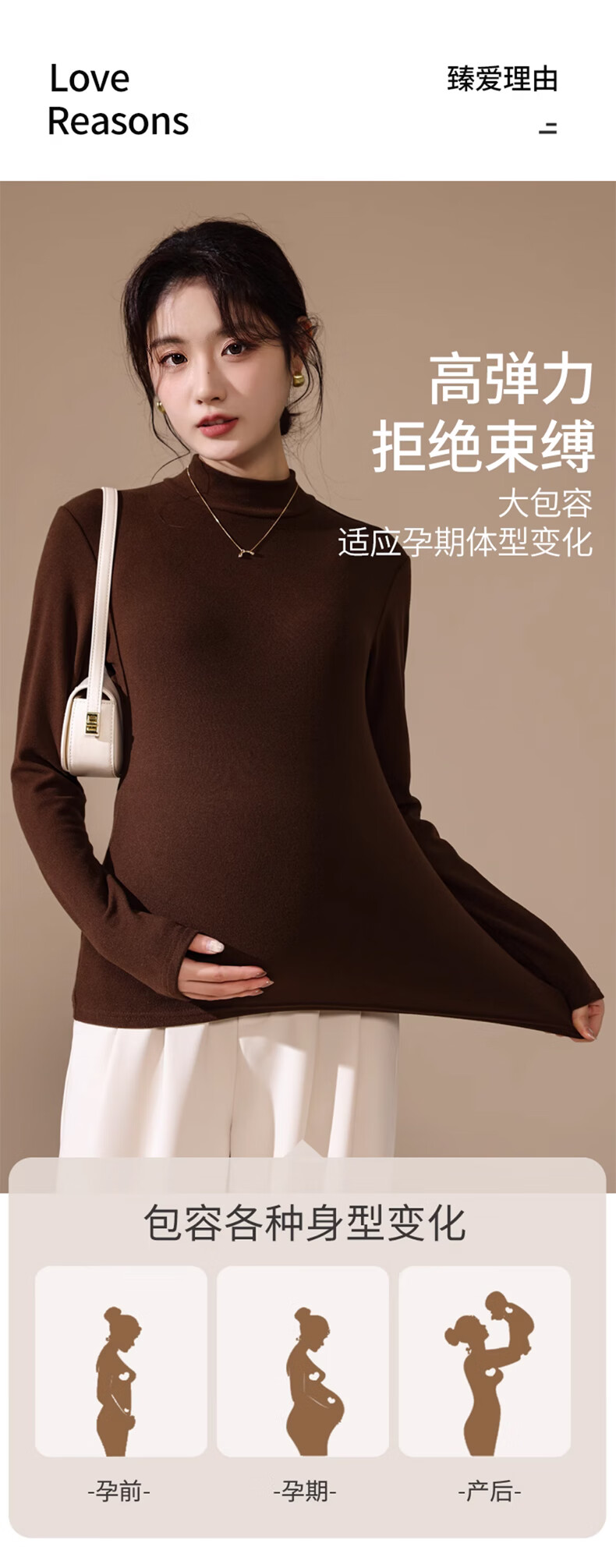 LangSha Maternity Half High Neck Base Shirt Women【25 Autumn and Winter New Products】Double-sided Plus Velvet Inner Wear Antibacterial Maternity Warm Top