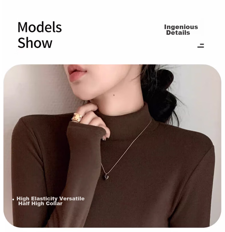 - High elasticity, versatile half high neck design, smooth shoulder lines, windproof tight cuffs.