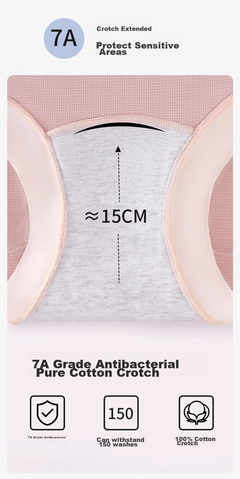 - 7A antibacterial cotton crotch for sensitive areas