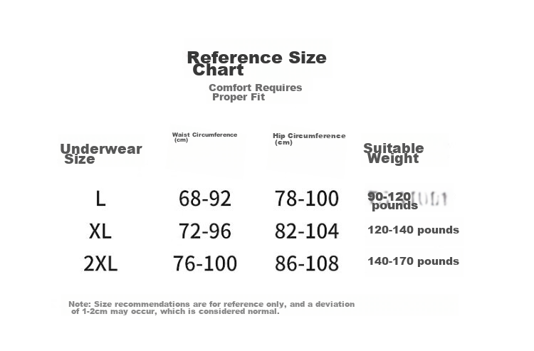 **Size Options:** L, XL, 2XL (Please refer to size chart for waist and hip measurements).