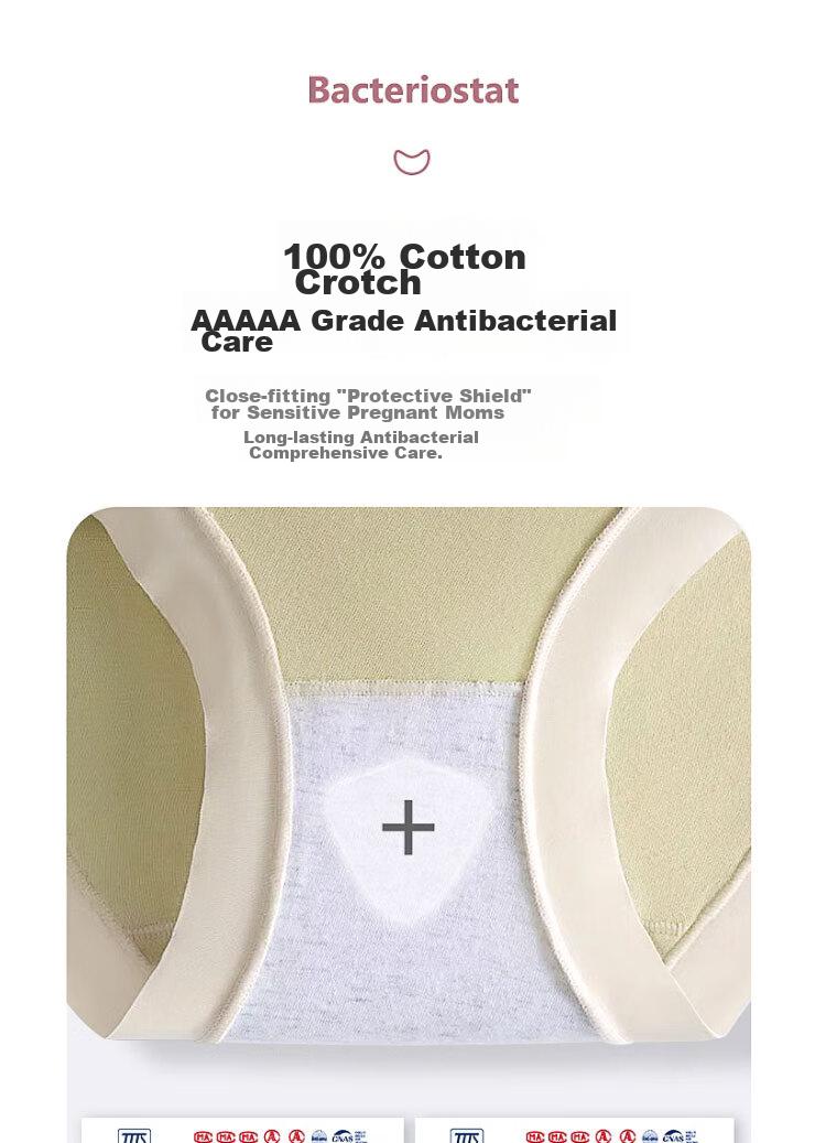 **Detail:** Seamless waistband and leg openings, U-shaped high waist design for belly support, AAAAA-grade antibacterial protection.