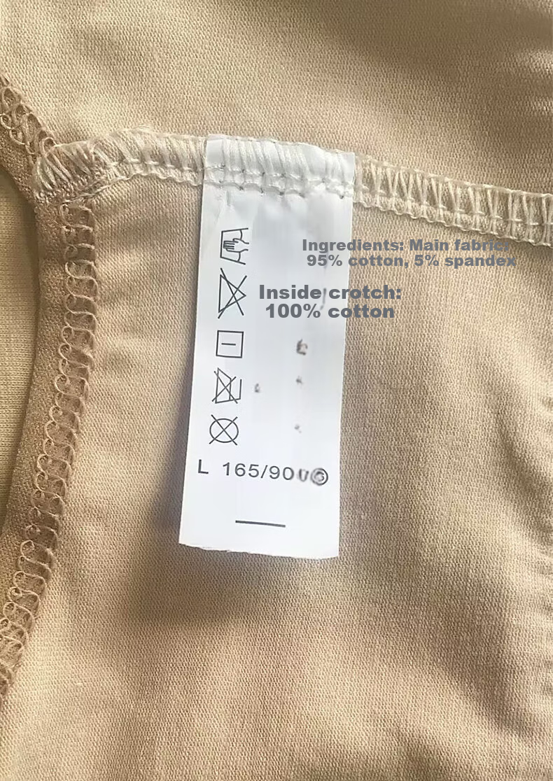 Composition: Main fabric: 95% cotton, 5% spandex; Crotch: 100% cotton