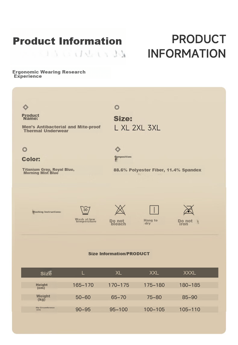 **Product Name:** Men's Antibacterial Dust Mite Resistant Thermal Underwear