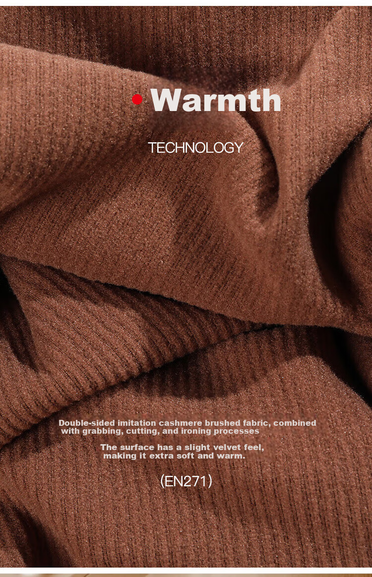 **Technology:** Double-sided faux cashmere brushed fabric for a soft and warm feel