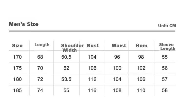 - 3XL: Length 73, Shoulder 62.5, Chest 46, Waist 20, Hem 53, Sleeve Length 62