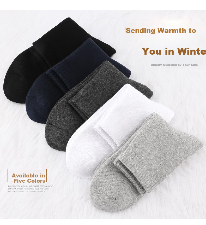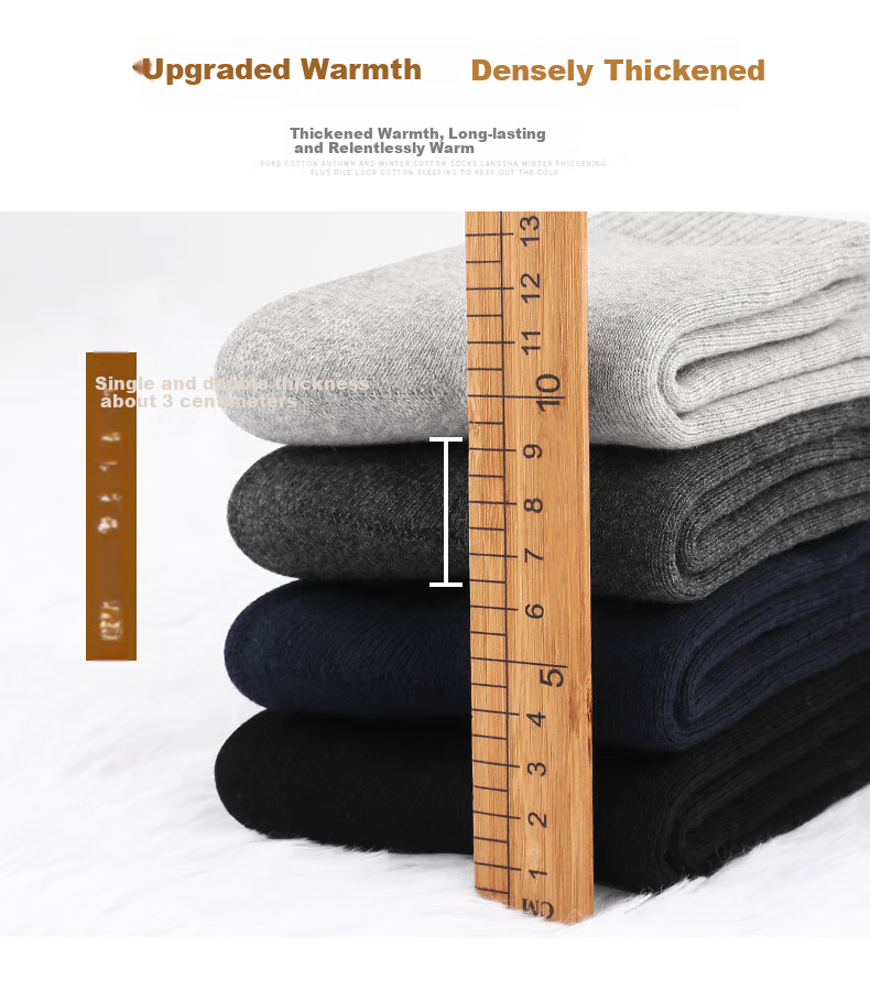 LangSha Winter Thickening Plus Pile Loop Cotton Socks are designed to provide ultimate warmth and comfort during the cold seasons. The socks feature a thickened pile loop design that is three times thicker than regular socks, ensuring effective insulation against the cold. With a 360° full pile loop construction, these socks wrap your feet snugly for maximum warmth. The elastic opening is designed to stay in place without being too tight, while the reinforced heel and toe enhance durability. Available in a variety of colors, these socks are the perfect choice for keeping your feet warm and cozy all winter long.