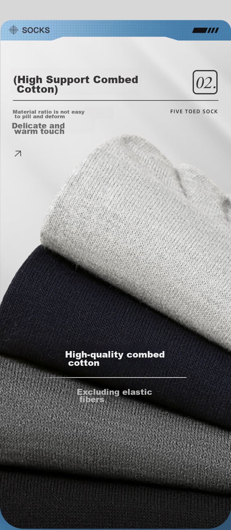 This LangSha Men's Five-Toe Mid-Calf Socks are made of high-quality combed cotton, featuring antibacterial properties, ergonomic design, and meticulous craftsmanship for a comfortable and hygienic wearing experience.