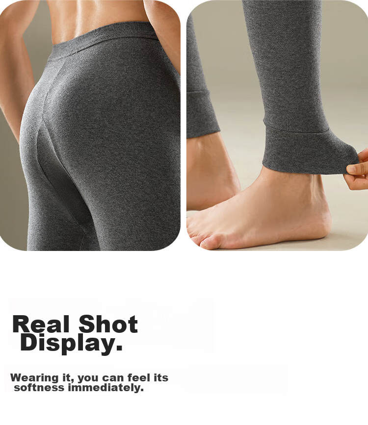 LangSha Men's Long Johns, Single Piece, Pure Cotton Thin Style, Wool Antibacterial Knee Protection, Men's Cotton Wool Pants, Warm Thermal Underwear, Black, XL