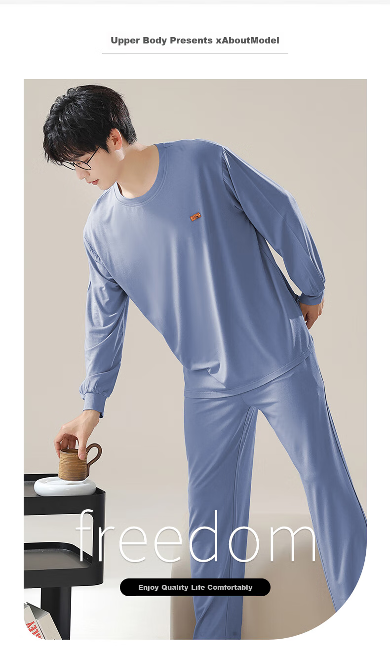 This LangSha Men's Casual Home Pajama Set is designed for a fashionable, tidy, and comfortable lifestyle, offering a blend of simplicity and quality for everyday wear and relaxation at home.