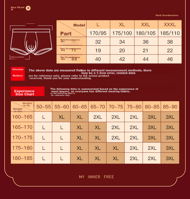 - Waist: 170/95, 175/100, 180/105, 185/110