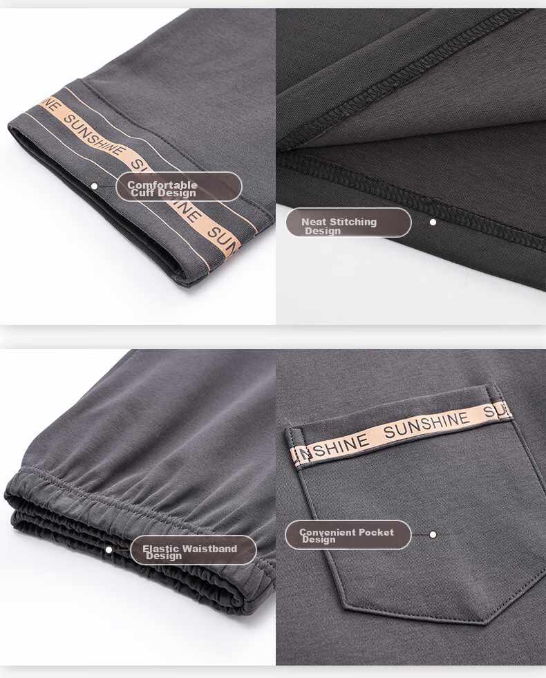 - Simple neckline design, comfortable cuff design, neat stitching, convenient pocket design, and elastic waistband design