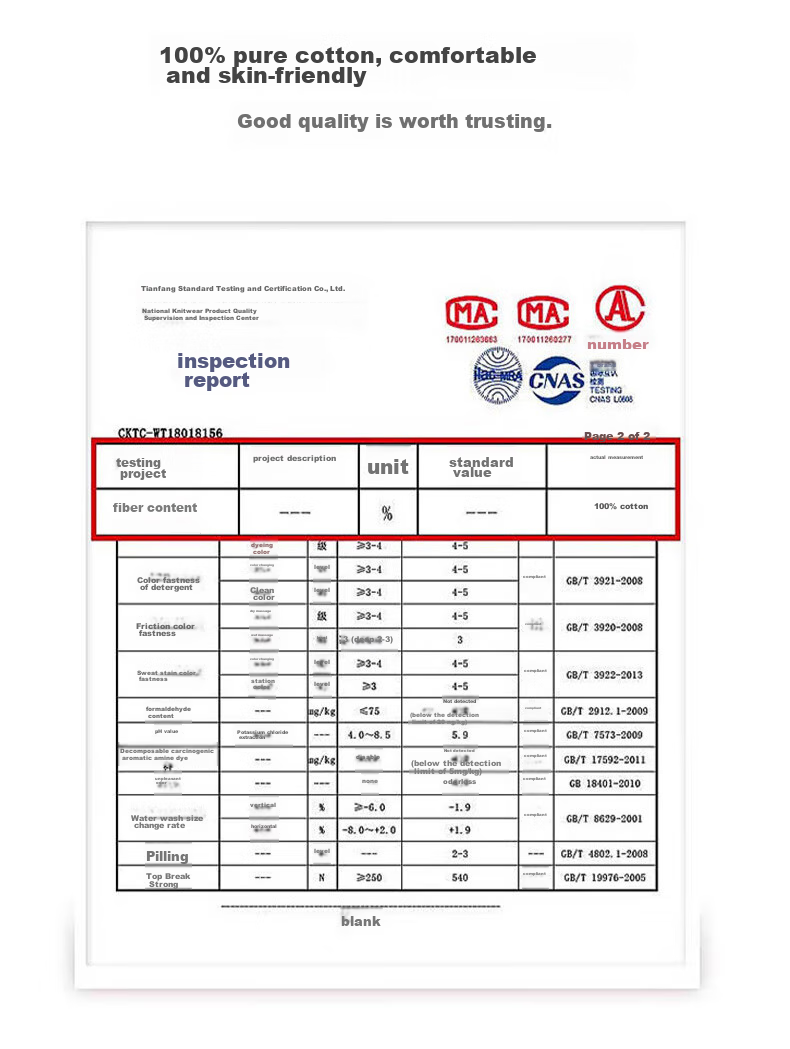 - Tested and certified by National Textile Quality Supervision and Inspection Center