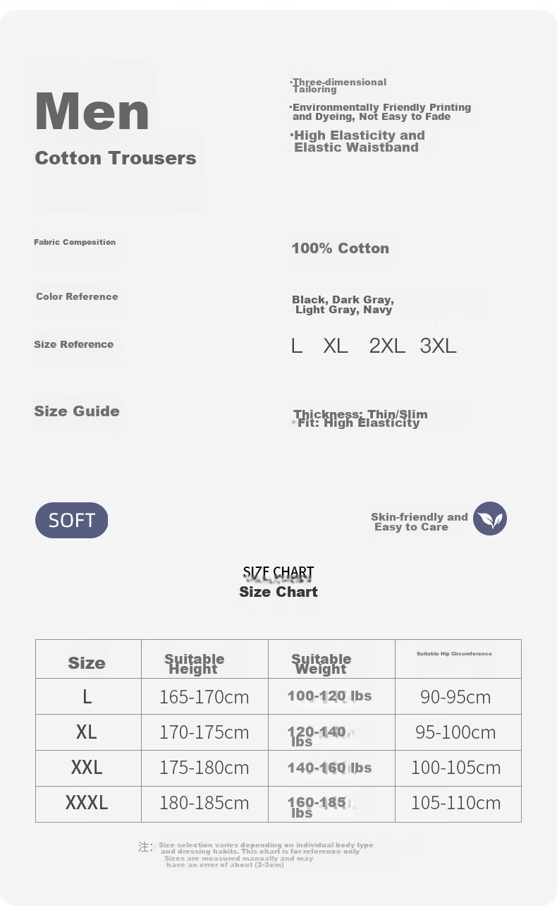 - XXL: Height 175-180cm, Weight 140-160lbs, Hip 100-105cm