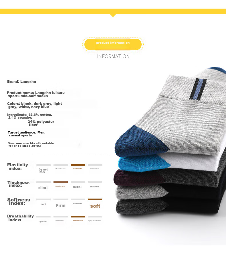 **Product Name:** LangSha Casual Sports Mid-Calf Socks