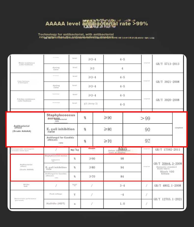 - AAAAA level antibacterial rate >99%