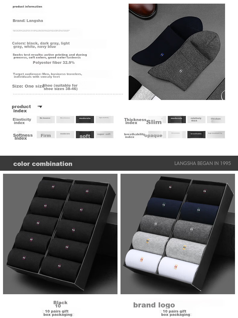 **Product Name:** LangSha Antibacterial Mid-Calf Men's Socks