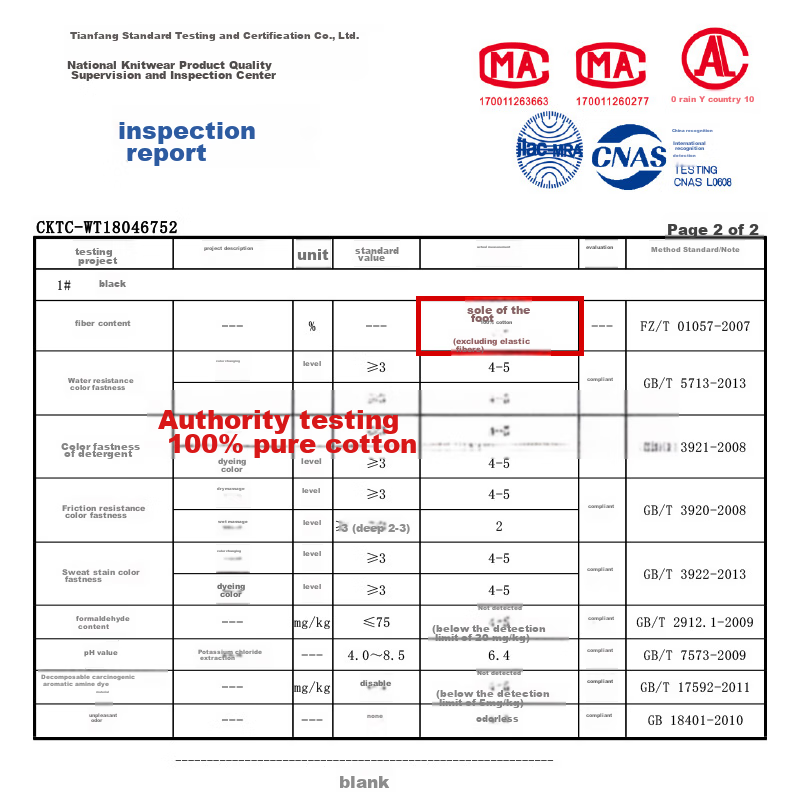 **Test Report:** Certified by China National Knitting Product Quality Supervision and Inspection Center