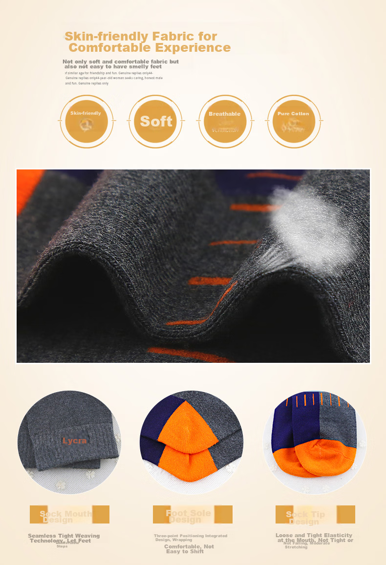 **Detail Display:** Detailed information on the cotton material, craftsmanship, and design features of the socks.